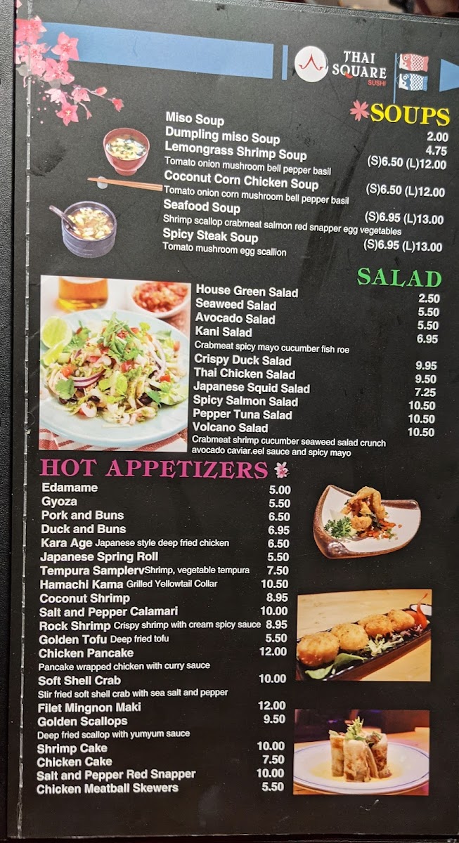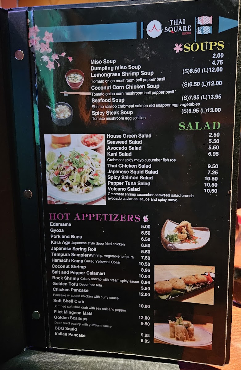 Soup or salad. Spice levels: mild to extra extra spicy.